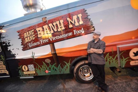 Trong hôm thứ sáu ngày 17 tháng giêng vừa qua, ông Gladdis đã khai trương một xe bán bánh mì Việt Nam lưu động, đậu trong bãi đậu xe của tiệm Sam’s Quik Shop trên đường Erwin trong thành phố Durham. Xe bán bánh mì có tên là “Bang Bang Banh Mi” chuyên môn cung cấp những loại thức ăn Việt không có chất gluten (chất gluten là một chất đạm có trong bột mì, có thể gây dị ứng cho nhiều người). Ông Gladdis là người dị ứng với gluten và thấy là thức ăn Việt Nam thích hợp với những người bị ăn kiên như ông ta.