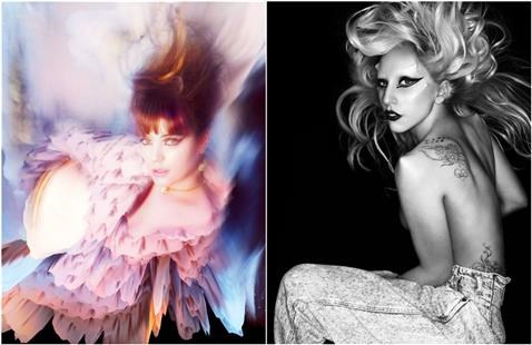 2 bức ảnh của Nick Knight (từ trái sang): ảnh ca sĩ Lily Allen chụp bằng iPhone và ảnh ca sĩ Lady Gaga chụp cho album Born This Way