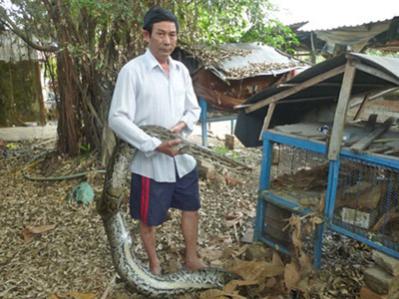 Một số người trở nên khá giả nhờ nuôi trăn. Một trại ở thị trấn Tri Tôn, An Giang, lúc nào cũng có hơn một ngàn con đủ loại, cả hai loại trăn vàng và trăn đất. Mỗi tháng cơ sở này sơ chế xà xuất cảng từ 200 đến 300 tấm da trăn. Ở Bình Dương, theo báo Dân Việt ngày 29/5/2013, một trang trại ở thị xã Thuận An có doanh thu hơn 4 tỉ đồng mỗi năm nhờ xuất cảng da trăn và da cá sấu. (TN)