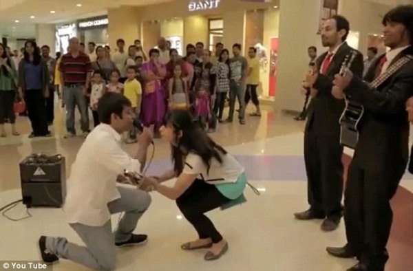 Mới đây, một anh chàng đã quyết định tỏ tình với người yêu của mình tại một trung tâm thương mại, và thật không may cho anh ấy rằng mọi chuyện lại kết thúc không như mong muốn.