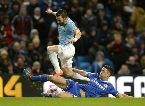 Chín phút sau, đến lượt Silva thử thách tài nghệ của Petr Cech và thủ môn đội khách phải tung người hết cỡ mới đẩy được cú dứt điểm của đối phương bằng đầu ngón tay. Sức ép sau đó tiếp tục dồn lên phần sân Chelsea và chỉ một phút trước khi kết thúc hiệp một, Edin Dzeko bỏ lỡ cơ hội nhân đôi cách biệt khi anh chậm một nhịp để nhận đường chuyền ngang cực kỳ khó chịu của đồng đội James Milner.