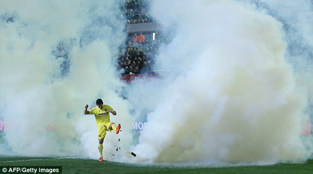 Trận đấu giữa Villarreal và Celta Vigo đă buộc phải tạm dừng v́ những cổ động viên đội chủ nhà đă ném bom khói xuống sân. Rất có thể, Villarreal sẽ bị phạt nặng sau vụ này.