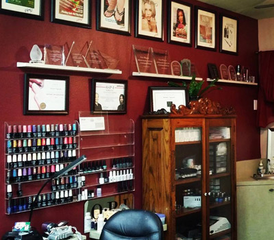 Những giải thưởng làm nail được Robert Nguyễn đặt trang trọng nơi làm việc. (Hình: Robert Nail Guy Nguyen Facebook)