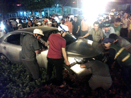 Đến 21h35p cùng ngày, chiếc xe ôtô mới được đưa ra khỏi hiện trường.