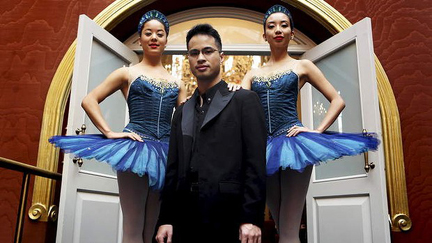 Phạm Hoàng với hai vũ công ballet Karen Nanasca và Jill Ogai bên ngoài tòa nhà Queen Victoria ở Sydney. (Hình: Sasha Woolley/Sydney Morning Herald)