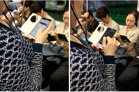 Theo đó, 2 hình ảnh vừa được chia sẻ lên trang mạng SeeKo của Hàn Quốc cho thấy một cô gái trên tàu điện ngầm đang sử dụng chiếc smartphone G3 sắp được ra mắt của LG. Với hàng loạt hình ảnh thực tế và chính thức đã bị rò rỉ trước đó, không quá khó để có thể nhận ra đây chính là LG G3.