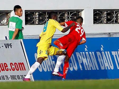 Đây chính là trận đấu nổi cộm nhất ở vòng 17 V-League. Thậm chí, vụ ẩu đả giữa cầu thủ Samson của Hà Nội T&T và các cầu thủ Hải Phòng chẳng khác nào một màn đấu võ trên sân, khiến người xem phải ngao ngán.