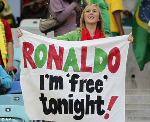 Trước khi trận cầu khởi tranh, phía khán đài của CĐV Bồ Đào Nha xuất hiện nhiều thông điệp dành cho Cristiano Ronaldo, ngôi sao số 1 của đội bóng. "Ronaldo, em rảnh tối nay!", một lời hẹn hò dành cho ngôi sao điển trai.