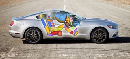 Ford đã giới thiệu hệ thống túi khí đầu gối mới của hãng, sẽ xuất hiện lần đầu tiên trên xe Mustang 2015.