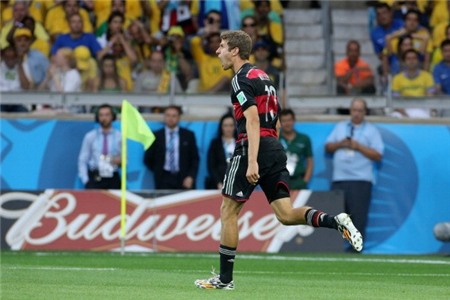 Chỉ mất 11 phút thi đấu, tuyển Đức giáng cho đội chủ nhà một đòn rất đau. Từ tình huống phạt góc bên cánh phải, Thomas Mueller lặng lẽ thực hiện cú đệm bóng cận thành đánh bại Cesar. Ở pha bóng này, các cầu thủ Brazil thực sự ngơ ngác không hiểu vì sao mành lưới của đội nhà lại rung lên.