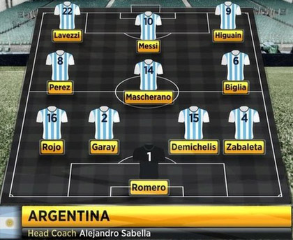 Sabella cho thấy sự gần gũi với các cầu thủ, khác nhiều so với Maradona, người luôn tỏ ra uy quyền. Chiến lược gia này giống như một thầy giáo tiểu học, nhưng giữ cho Argentina ổn định và chơi với quyết tâm cao tại giải năm nay. Lối chơi xoay quanh Messi của ông đã thành công cho tới lúc này, đưa Argentina vào chung kết.