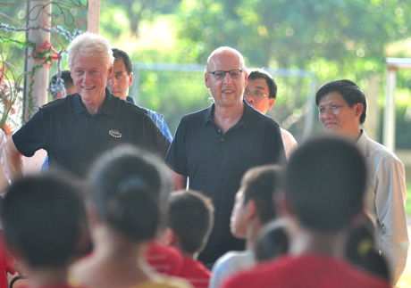 Vào chiều qua (18/7), khi các em nhỏ tại Trung tâm này còn đang mải giao lưu với ông Bill Clinton nhân chuyến thăm và làm việc của cựu Tổng thống Mỹ tại Hà Nội, không ai kịp nhận ra vị đồng Chủ tịch của Quỷ đỏ thành Manchester đứng lẫn trong đoàn khách mời.