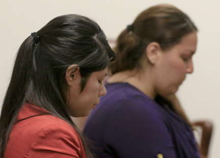 Từ bên trái là Vanesa Zavala và Candace Brito. Tuy bị kết tội ngộ sát, cả hai đều không bị tội sát nhân. Nhiều bồi thẩm viên đã khóc khi phán quyết được đọc trước tòa. (Hình: Mark Boster-Pool/Getty Images)