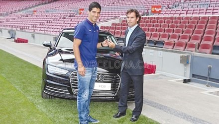 Mỗi năm, nhà tài trợ Audi đều tặng riêng cho các ngôi sao của Barcelona một chiếc xe mới toanh. Riêng với Luis Suarez, vì là tân binh nên anh đã được Audi đặc cách tặng hẳn một chiếc Q7 TDI vừa mới xuất xưởng.