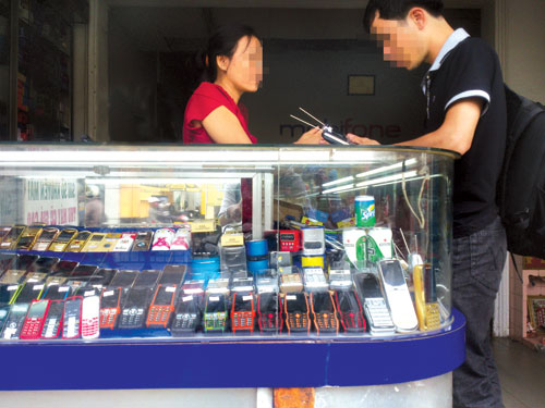 Việc buôn bán ĐT TQ, theo các chủ cửa hàng, không mấy khó khăn. Thông qua giới thiệu của một chủ cửa hàng ĐT tại Q.3, chúng tôi liên hệ qua ĐT với một đầu mối tên Hải, chủ một ki-ốt kinh doanh đồ điện máy tại chợ Tân Thanh (Lạng Sơn), đặt vấn đề muốn mua ĐT K80. Hải cho biết, giá chiếc ĐT này 350.000đ. “Anh mua bao nhiêu cũng có, nếu đồng ư mua th́ chuyển tiền vào tài khoản, ba ngày sau sẽ có người gọi điện giao hàng”, Hải nói.