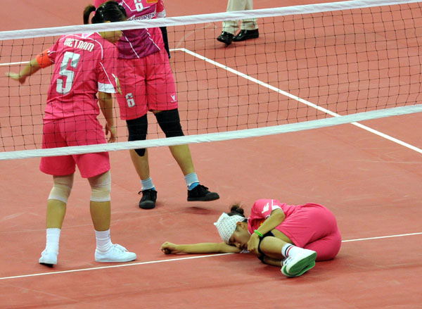 Sau khi có được tấm HCĐ ở nội dung đá đôi môn cầu mây, đội nữ Việt Nam đã giành vị trí nhất bảng A để bước vào vòng bán kết gặp tuyển nữ Thái Lan. Đây là nội dung cuối cùng của đội tuyển cầu mây nữ Việt Nam tại ASIAD năm nay, nên toàn đội đã thi đấu rất cố gắng.