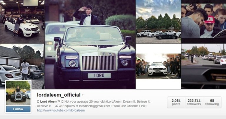 Aleem Iqbal, 19 tuổi, đến từ Solihull, West Midlands, Anh Quốc được biết đến là một trong những thiếu gia giàu có, thường xuyên phô bày cuộc sống cá nhân sang chảnh trên mạng xã hội. Trên tài khoản Facebook, Twitter và Youtube, anh tự gọi mình là 'Chúa tể Aleem'.