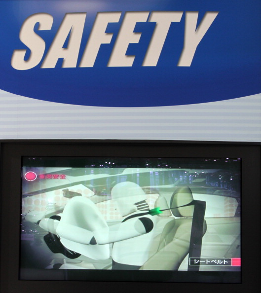 Màn ảnh của hãng Toyota ở Tokyo cho thấy sự an toàn của túi khí. Công ty Takata chuyên sản xuất túi khí đang bị rơi vào một cuộc khủng hoảng lớn nhất trong hai thập niên, vì sự việc túi có thể nổ gây thương tích cho người ngồi trong xe. (Getty Images)