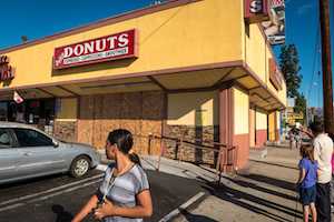 Tin tức hàng ngày ảnh của Jolly Donuts thiệt hại, bởi David Crane