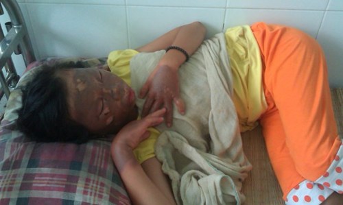Bà Võ Thị Thuần (40 tuổi) bị bỏng 14% trên vùng mặt và cẳng tay.