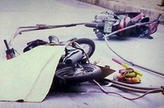 Trong số 3 chiếc xe máy gặp nạn, 2 chiếc vẫn bị bó thép đè lên.