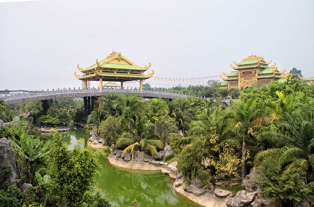 Tức là tham vọng là một khu phức hợp nhưng trình độ, tầm nhìn, kể cả từ văn hóa nữa. Từ mong muốn tới thực tế còn một khoảng cách khá lớn. Quan điểm cá nhân từng người bộc lộ thì mình không dám đánh giá nhưng mà xét tổng thể thì khu du lịch này không được bình thường lắm. Ví dụ trong cái đền thờ lớn có thờ trên cùng là Hùng Vương, chính giữa là thờ Hồ Chí Minh và bên dưới là thờ gia đình của chủ nhân. Chỗ cho khách vào tham quan mà bố trí như vậy thì nó hơi kỳ và nhiều khách người ta phản ứng.