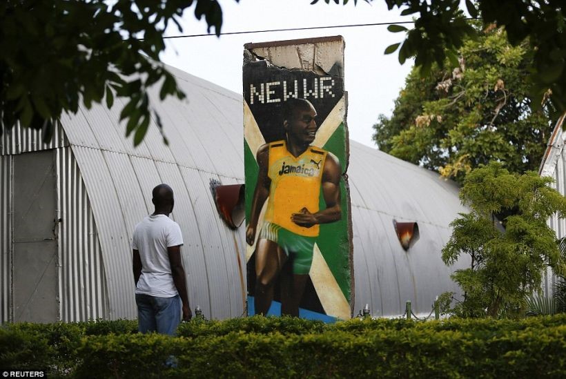 Tại Bảo tàng Quân đội Jamaica tại Kingston, một phần bức tưởng 12 đoạn có bức tranh của nhà vô địch Olympic Usain Bolt. (Reuters)