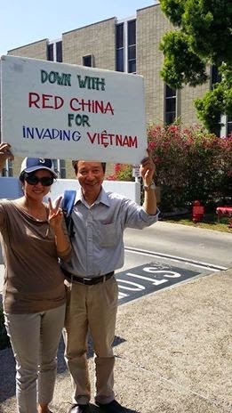 Nói về biểu tình ở California, mình kể thêm một chút kỷ niệm. Tói hôm sau, Minh đưa mình đi có việc. Đột nhiên, anh dừng xe lại, bảo vào đây cái đã. Thì ra ở đấy, cũng có một cuộc mít tinh chống Trung Cộng. Minh bảo đừng nói gì nhé, cứ quan sát thôi (như đã nói, Minh luôn luôn tìm cách bảo vệ mình). Đó là một khoảng vỉa hè nhưng rất rộng, trên tường căng một phông lớn. Cũng cờ vàng, biểu ngữ và hô khẩu hiệu đả đảo cả Trung Cộng lẫn Việt Cộng. Mình đứng quan sát được một lúc thì đồng bào lần lượt kéo đến vây quanh hỏi chuyện.