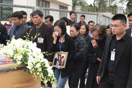 Đúng 12h30 trưa nay (13/11), lễ bàn giao di hài 3 mẹ con người Việt tử nạn hồi tháng 7/2014 tại Ukraine được tổ chức ở Nhà ga hàng hóa nội địa (sân bay Nội Bài). Tham dự buổi lễ cho gia đình, người thân của các nạn nhân và các cơ quan liên quan. Khi chiếc xe đưa di hài 3 nạn nhân từ từ tiến ra phía sân trước của nhà ga, nhiều người chứng kiến đã không cầm nổi nước mắt.
