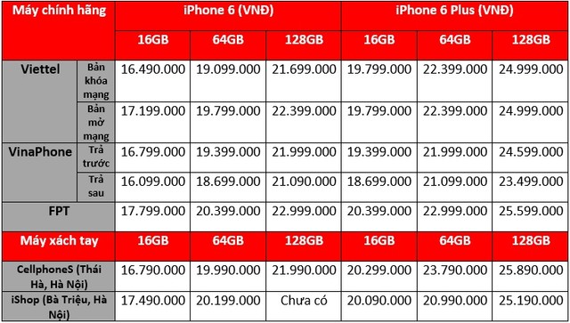 Nhìn chung, Vinaphone đang là đơn vị có mức giá iPhone 6/6 Plus hấp dẫn nhất trên thị trường, thậm chí còn "dễ chịu" hơn của một số cửa hàng kinh doanh máy xách tay. Trong khi đó, FPT vẫn giữ vị trí đứng đầu, đồng thời cung cấp dịch vụ bảo hành 1 đổi 1 trong 1 năm.