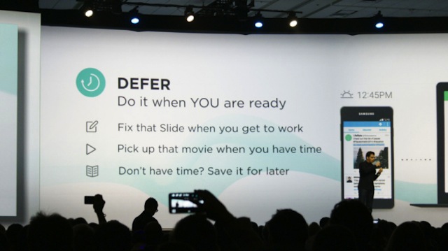 Còn Defer sẽ cho phép bạn trì hoãn thực hiện một nhiệm vụ cụ thể cho đến khi bạn sẵn sàng, như bạn có thể ngừng xem phim trên điện thoại Samsung và tiếp tục xem bộ phim đó từ một thiết bị Samsung khác.