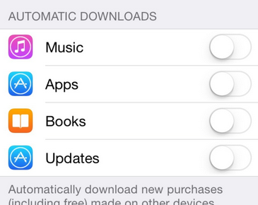 Ở mục 'iTunes & App Store' trong Settings, tắt mục Update. Bạn có thể tự update bằng tay và có thể update toàn bộ trong Appstore. Điều này sẽ giúp ích rất nhiều nếu bạn có nhiều ứng dụng.