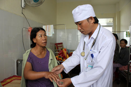 Một bệnh nhân bị rắn lục đuôi đỏ cắn được điều trị tại Bệnh viện Đa khoa Quảng Ngãi Ảnh: TỬ TRỰC