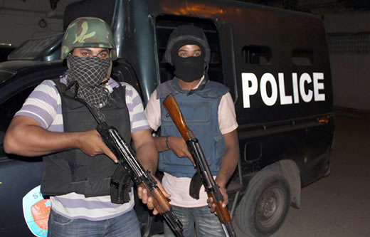 Cảnh sát Karachi trong vụ đột kích ban đêm. Ảnh: BBC