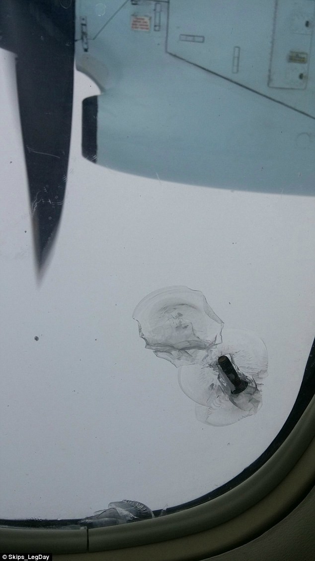 "Vết thương" trên cửa kính nhìn từ trong máy bay. Ảnh: Skips_LegDay