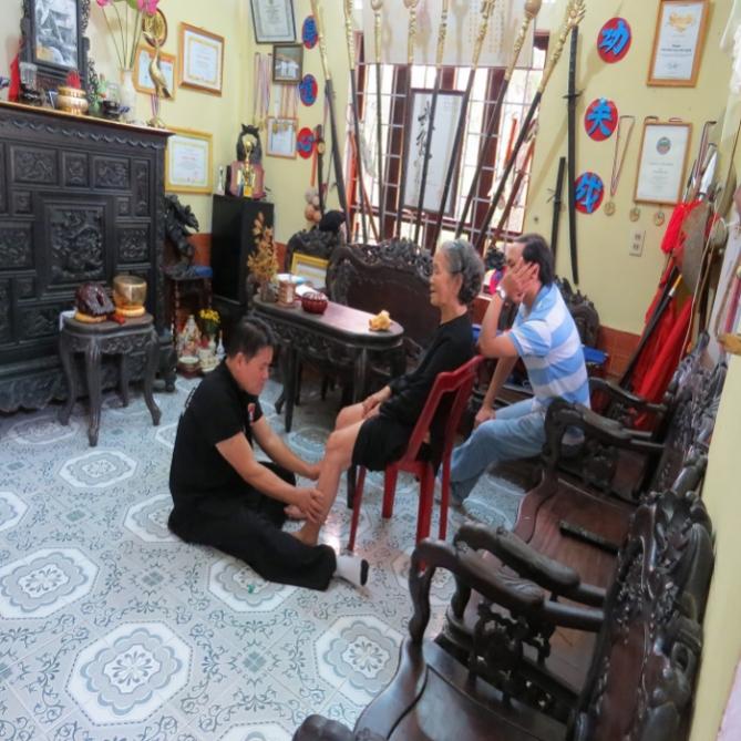 Võ sư Trương Quang Kim đang chữa bệnh cho người dân.