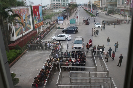 Trao đổi về vấn đề này, một cán bộ Hải Quan, thuộc chi cục Hải Quan Móng Cái cho biết: Chưa bao giờ chúng tôi phải đối mặt với tình trạng người dân đổ về cửa khẩu tham gia sang bên kia biên giới mua hàng nhiều như thế này. Từ 3-4 giờ sáng hằng ngày dân đã xếp hàng dài cae trăm mét chờ đến lượt. Đỉnh điểm là ngày 29/11 vừa qua khi có tới hơn 2 vạn người làm thủ tục. Đoàn người kéo dài gần 1km từ Khách sạn Cao Su ở Đại lộ Hòa Bình, phường Trần Phú tới cửa khẩu khiến đại lộ gần như tắc nghẽn.Rất nhiều người đã không thể kiềm chế, nổi khùng, xô xát khi phải chen lấn trong dòng người như dài dằng dặc. Cán bộ Hải Quan liên tục bị đê dọa đòi “ xử” nếu không nhanh tay” kiểm hàng” cho họ qua biên”