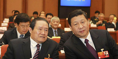 Chu Vĩnh Khang (trái) và Chủ tịch Tập Cận Bình khi ông Chu còn đương nhiệm. Với vị trí là Ủy viên Thường vụ Bộ Chính trị Trung Quốc, đứng đầu ủy ban Chính trị-Pháp luật của Đảng Cộng sản Trung Quốc, ông Chu Vĩnh Khang từng được xem là người giữ quyền lực đứng thứ 3 của đất nước 1,3 tỷ dân này.