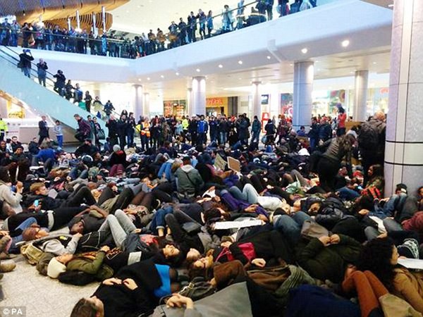Những người biểu tình nằm la liệt tại trung tâm mua sắm