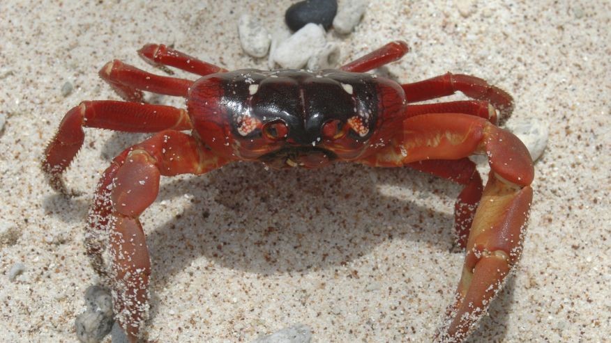 Trong số 14 loài cua đất trên đảo thì cua đỏ chiếm số lượng phong phú nhất. Đảo Christmas là nơi chứng kiến cuộc hành trình di cư của 120 triệu con cua mỗi năm. Chúng sẽ phải mất 1 tháng để đi ra biển và gặp nhiều nguy hiểm khác nhau thiếu nước, đường ghập ghềnh hay loại kiến vàng hung dữ có thể làm mù mắt chúng. Ra tới biển, chúng sẽ giao phối với nhau và cua đực quay trở về rừng. Những con cái sau đó cho ra đời hàng triệu những con cua nhỏ và chúng sẽ quay trở lại rừng tiếp tục vòng đời.