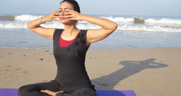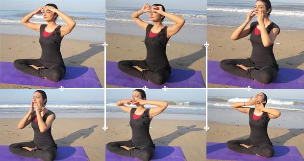Ngồi chéo chân thật thoải mái trên hai đùi, đặt ngón tay cái lên hai tai, trong khi đó các ngón còn lại trải dài trên khuôn mặt từ mắt, mũi, môi và cằm. Đảm bảo rằng khuỷu tay của bạn song song với mặt đất. Tập trung vào hơi thở khi các ngón tay ấn nhẹ vào mặt. Thực hiện trong 5 – 10 phút.