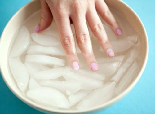 Nước đá sẽ giúp bạn rút ngắn thời gian làm móng và khiến da tay se khít, săn mịn.