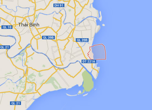 Xã Nam Thịnh (khoanh đỏ) giáp với vịnh Bắc Bộ. Sáng nay, vùng biển này có gió mùa đông bắc, sóng biển cao 2-4 m