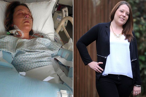 Joanna Cartwright lúc nằm viện và hiện tại (bên phải) khi đã bình phục sức khỏe.