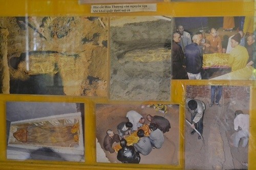 "Theo lẽ thường, khi chôn cất xuống dưới đất một thời gian, thì da thịt sẽ phải tiêu biến đi, nhưng di cốt của Hòa thượng vẫn nguyên vẹn. áo quan bằng gỗ đã mục tan, nhưng bộ cà sa và y phục Hòa thượng mặc vẫn còn nguyên.