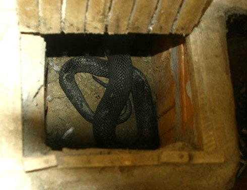 Những trường hợp rắn to đội nắp chuồng, bò vào nhà không phải là hiếm. Nghe kể, nhà anh Đỗ Thế Thọ có con rắn chúa 7kg đang đêm bò vào nhà. Hai vợ chồng nhìn thấy nó trườn qua người đứa con trai 3 tuổi mà đứng tim. Lúc đó, chỉ cần thằng bé khẽ cựa mình là lãnh trọn cú đớp của nó rồi. Cũng may, đứa bé ngủ say, không hay biết gì, và con rắn điềm nhiên chui xuống gầm giường nằm… cho mát.