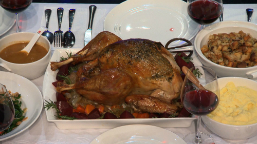 Bữa tiệc Giáng sinh gồm gà tây nướng, bánh mì, nước sốt và khoai tây nghiền của Robert Danhi. Ảnh: Đầu bếp Đỉnh