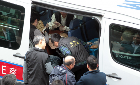 Cảnh sát Hong Kong thu hồi tiền rơi ở hiện trường. Ảnh: SCMP