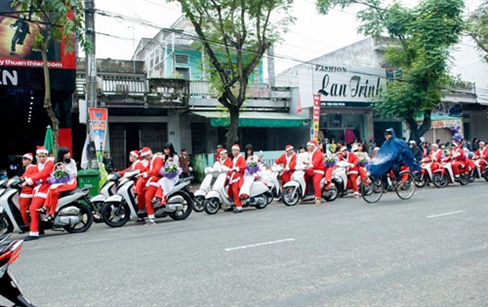 Hình ảnh hơn 20 ông già Noel đi SH, Vespa không đội mũ bảo hiểm trong một đám rước dâu ở Quảng Ngãi gây nhiều phản cảm cho dân mạng. Hình ảnh các ông già noel đi SH, Vespa không đội mũ bảo hiểm được chia sẻ trên Facebook hôm 24/12, sau hai ngày được lan truyền đã tạo nên sự khó chịu, phản cảm cho rất nhiều người xem trên mạng.