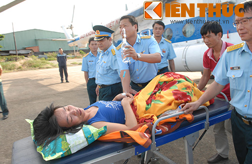 trực thăng bay ra huyện đảo Phú Quốc (Kiên Giang) để đưa chị Phạm Thị Thơm đang bị bệnh nặng vào đất liền để cấp cứu.